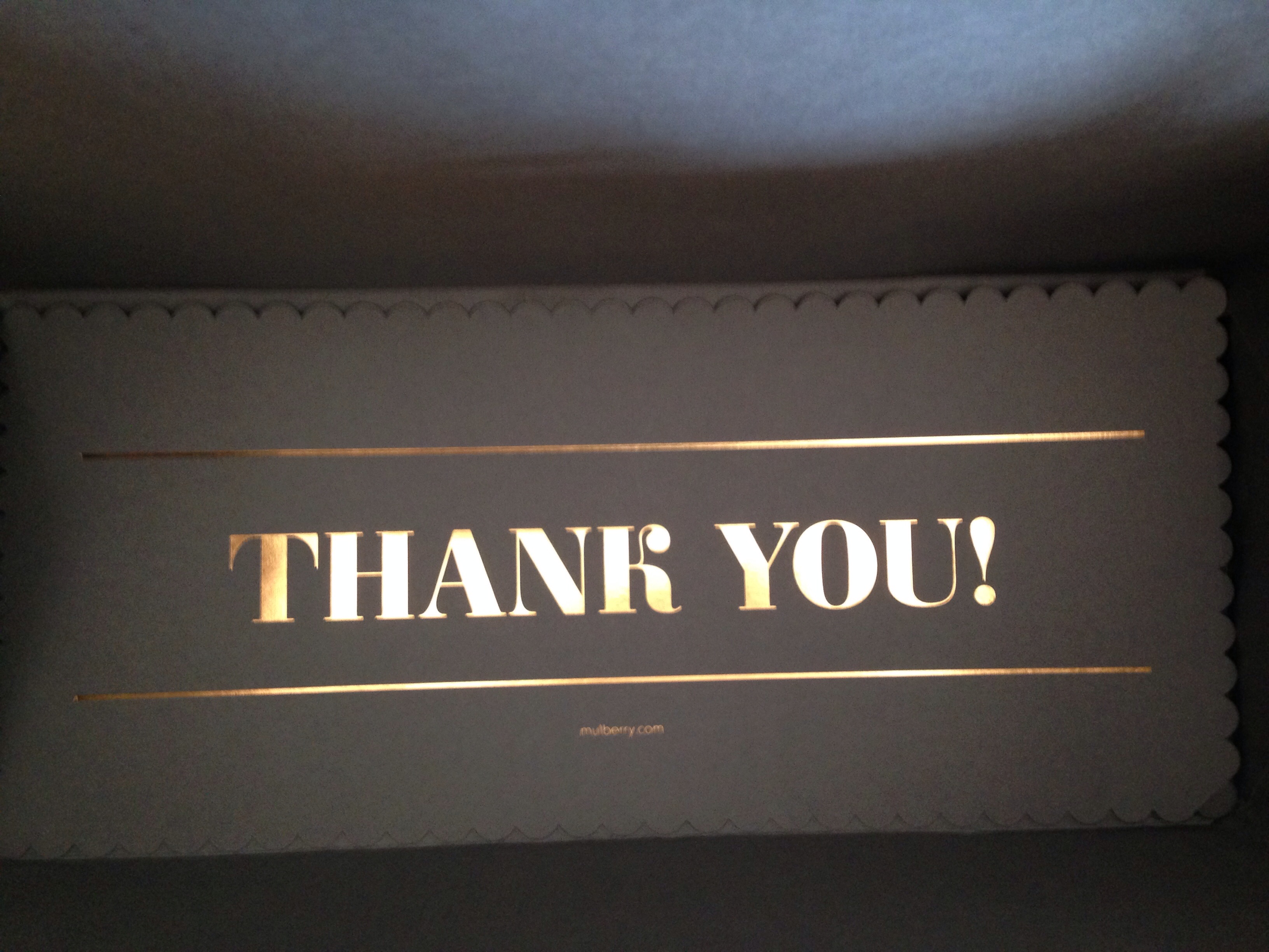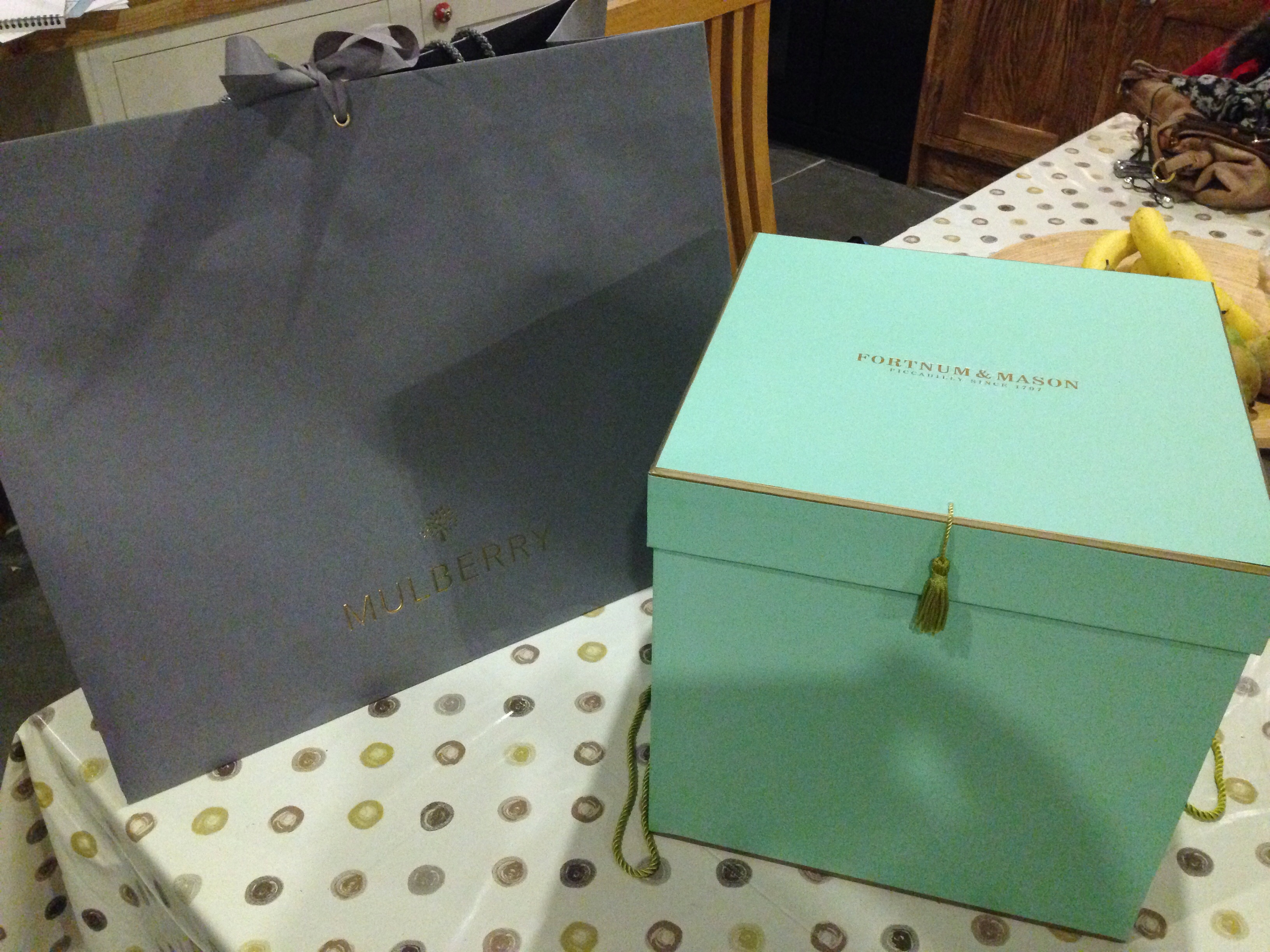 And so, just after two this afternoon,  a little bit of glamour hit the Lake District. The packaging couldn’t be lovelier (see the thank you message below) and the bag felt every bit as sumptuous as it looked on Fearne Cotton’s arm in Grazia. To top things off, my awesome boss gave me a Fortnum and Mason hamper!
